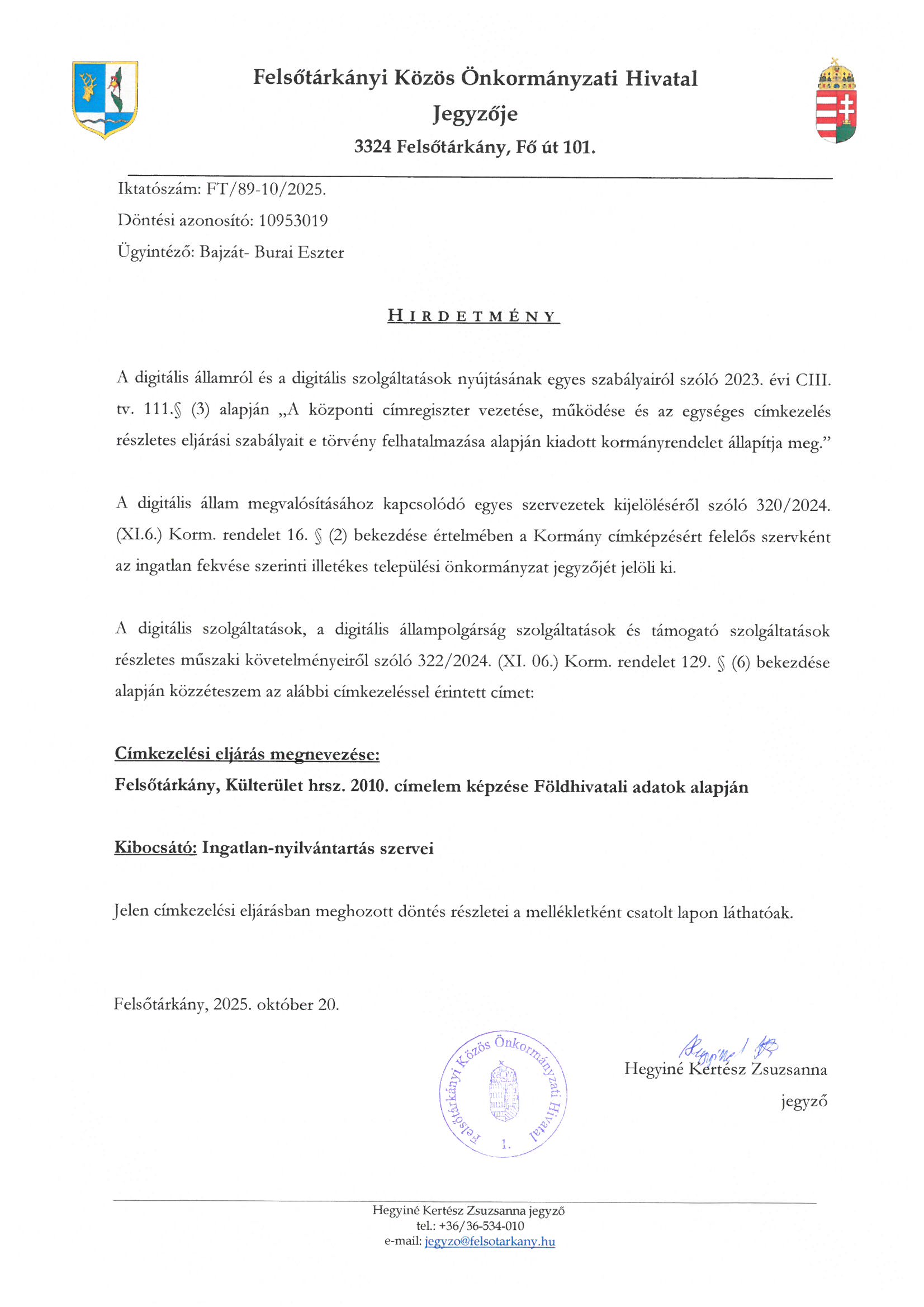 Hirdetmény- címkezelés