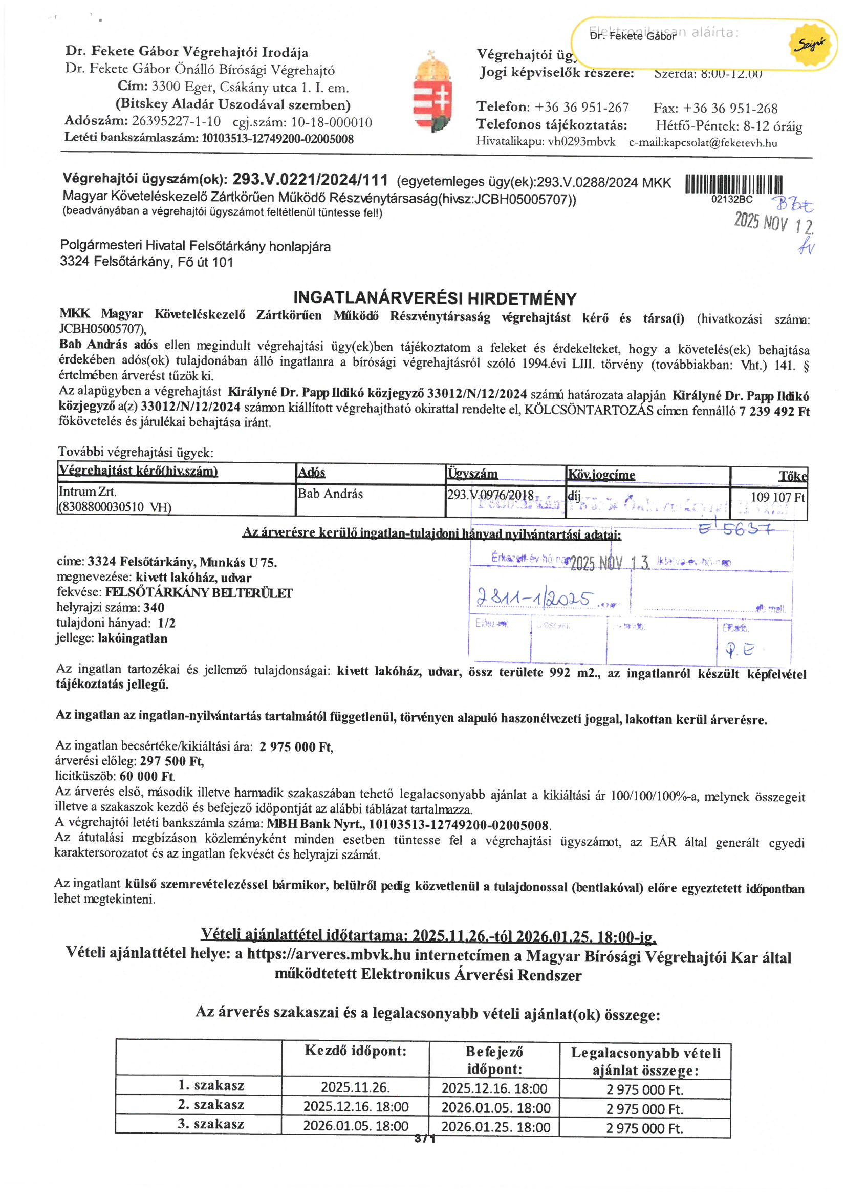 Ingatlanárverési hirdetmény