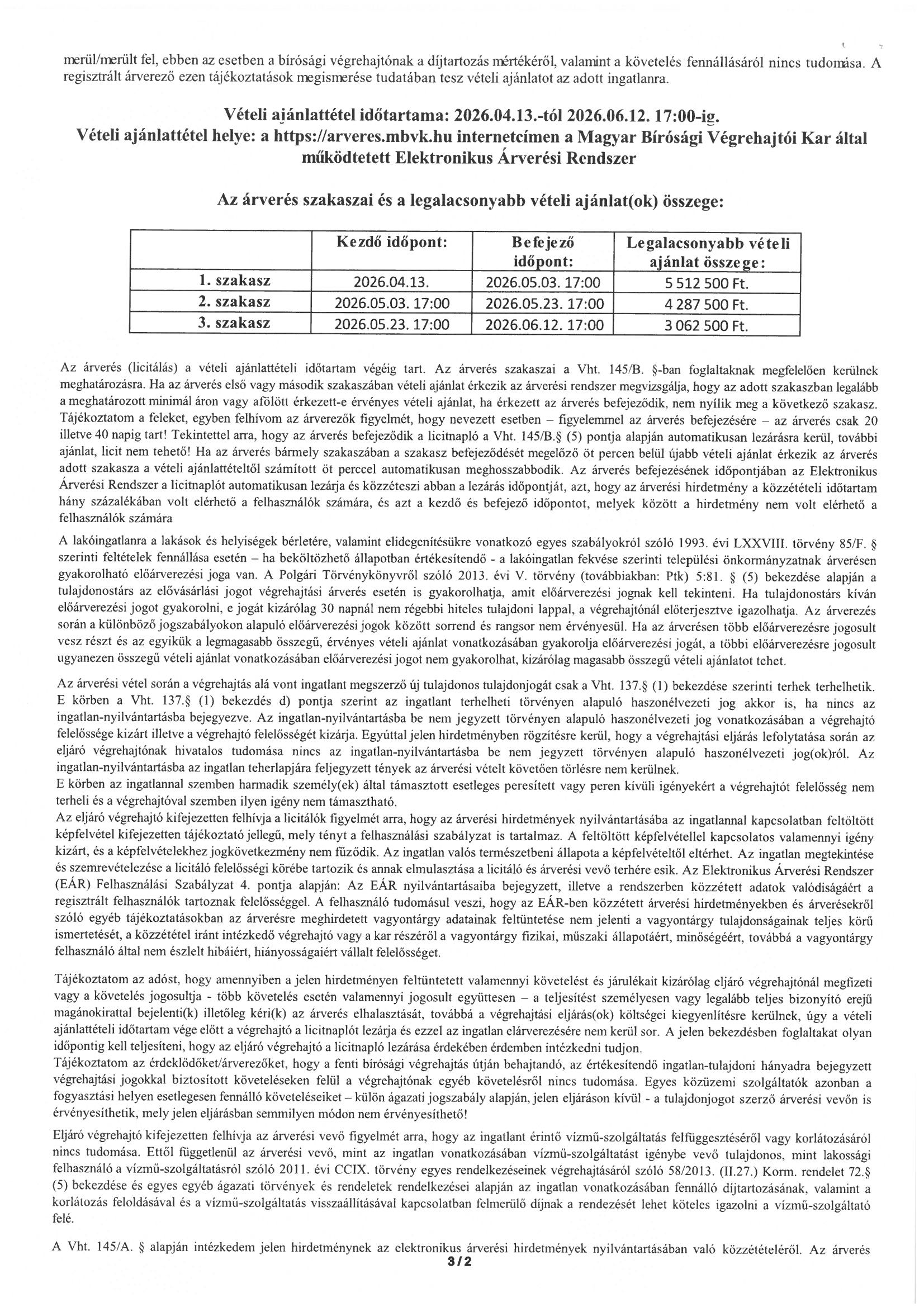 Ingatlanárverési hirdetmény