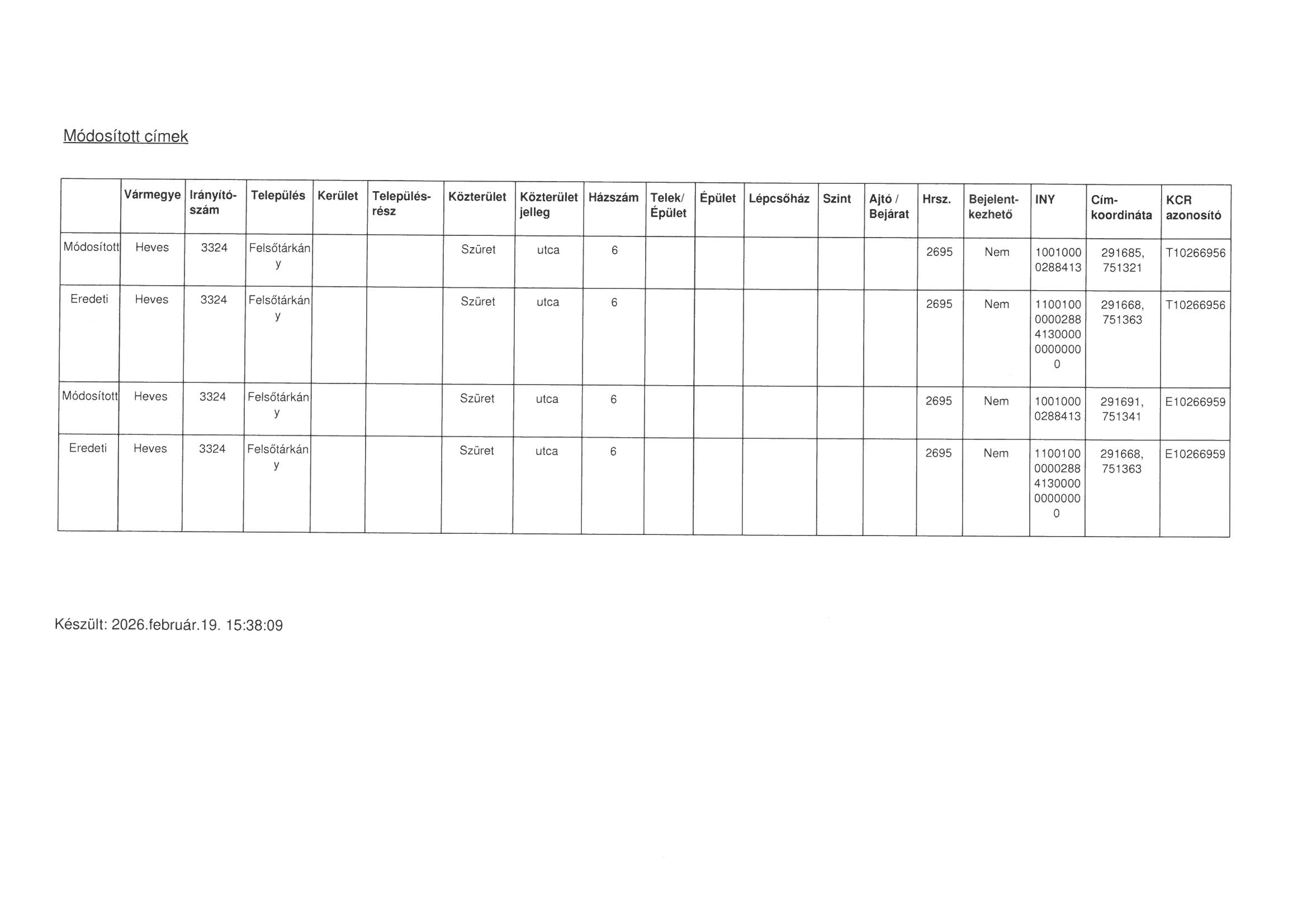Felsőtárkány, Szüret utca 6. 2695. hrsz épületfeltüntetés változás