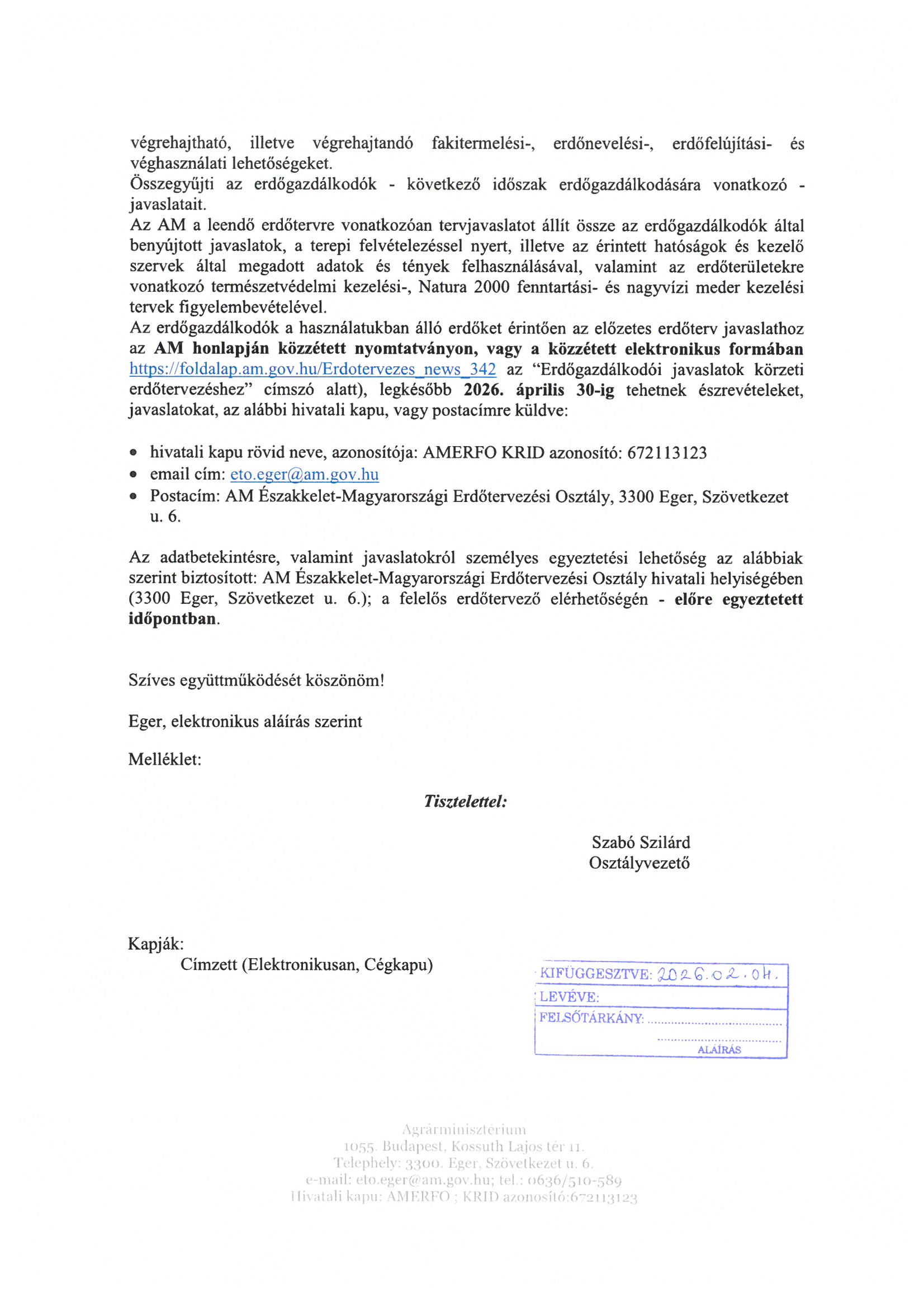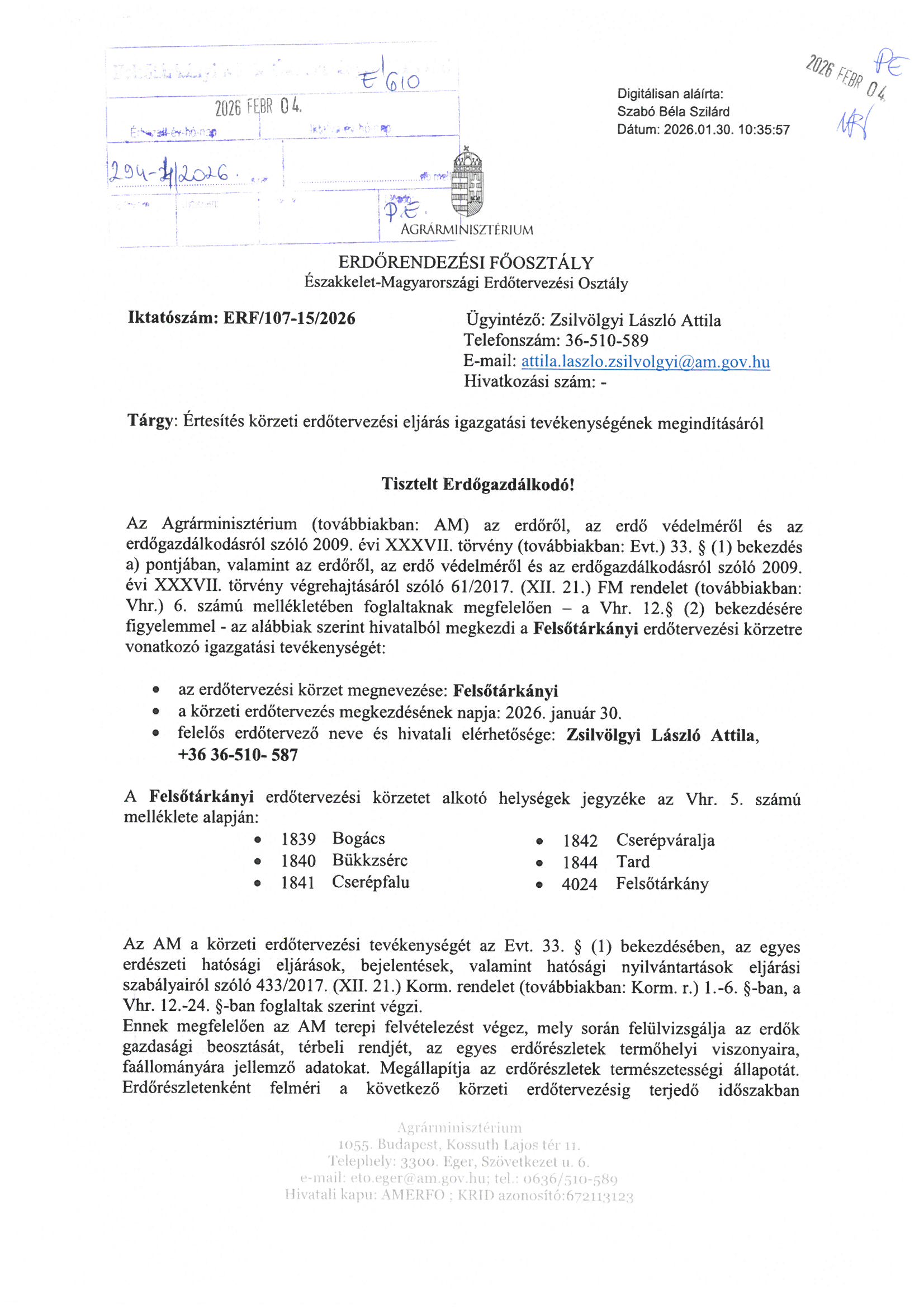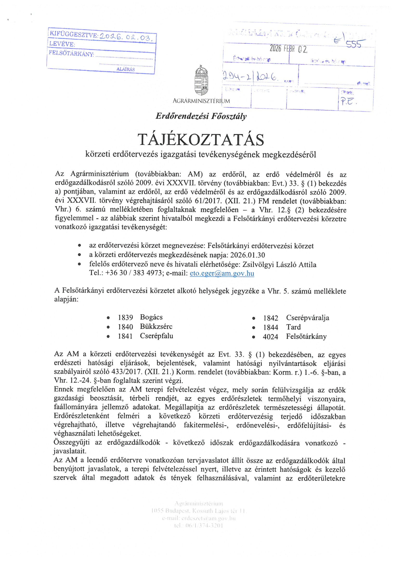 Közzététel körzeti erdőtervezési eljárás megindításáról