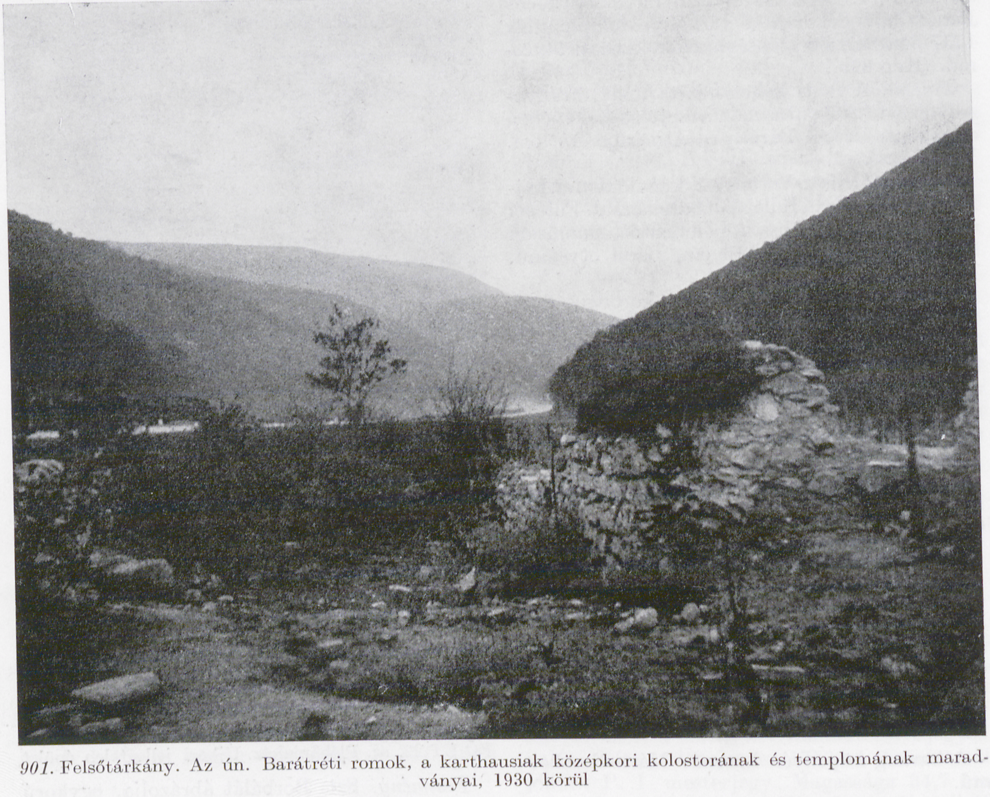 A Kő-köz szoros védi a mai Barát-völgyet, melynek latin neve Vallis Auxilii, vagyis „Segedelem völgye” volt, ami jól tükrözi a karthauzi rend elvonultságra és lelki elmélyülésre törekvő szellemiségét. A karthauziak rendje a legszigorúbb szerzetesi közösségek közé tartozott, tagjai remetei magányban, hallgatásban éltek, imádkozássál és régi egyházi művek másolásával foglalkoztak. IV. Béla idejében jött létre Magyarországon az első kolostoruk 1238-ban Ercsényben, a felsőtárkányi a negyedikként alakult idehaza és Szűz Máriáról nevezték el. A felsőtárkányi kolostorban a szerzetesek különálló cellaházakban laktak, melyeket egy központi templom és kerengő kapcsolt össze. Életük középpontjában az imádság, a kézi munka és az önellátás állt, világi kapcsolataik rendkívül korlátozottak voltak. A környező erdők, rétek és halastavak gazdasági alapot biztosítottak a kolostor számára, a karthauziak jelentős szerepet játszottak a térség erdőgazdálkodásában és vízrendezésében is.
